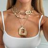 Exaggerated Metal Irregular Square Pendant Necklace, Hip Hop Ot Buckle Round Chain Necklace For Women