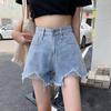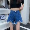 Pantaloncini di Jeans Neri a Vita Alta Comodi Skinny alla Moda e Versatili da Donna Sezione Sottile Gamba Larga Larghi Sottili con Bordo Grezzo Estivi