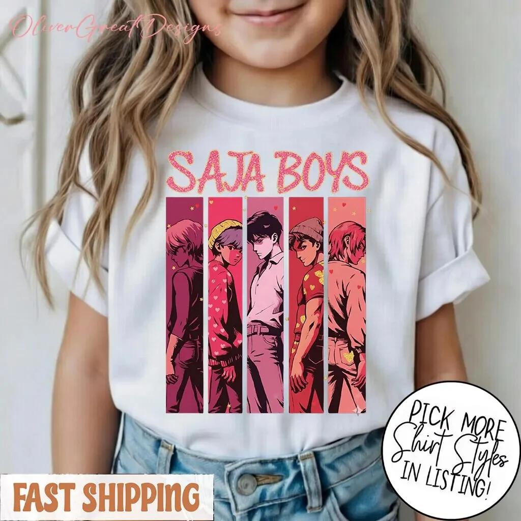 SAJA BOYS Anime Kids T-Shirt Retro Y2K Aesthetic Print Short Sleeve Tee Casual Summer Top for Boys Girls
