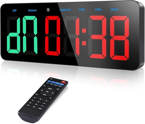 Sports Timer, Large Print, Interval Timer with Remote Control, Clock Function, Beat Function, Stopwatch, USB-C Powered, Wall Mountable, Built-in TABAT