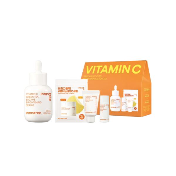 INNISFREE Vita C Green Tea Enzyme Serum Special Set combines powerful antioxidants and gentle exfoliating enzymes to brighten dull skin and improve skin texture. Infused with Jeju green tea and stabilized Vitamin C, it helps even out skin tone, reduce dark spots, and boost radiance. The lightweight, fast-absorbing serum leaves skin hydrated, refreshed, and glowing. Perfect for daily use and ideal as a gift set.