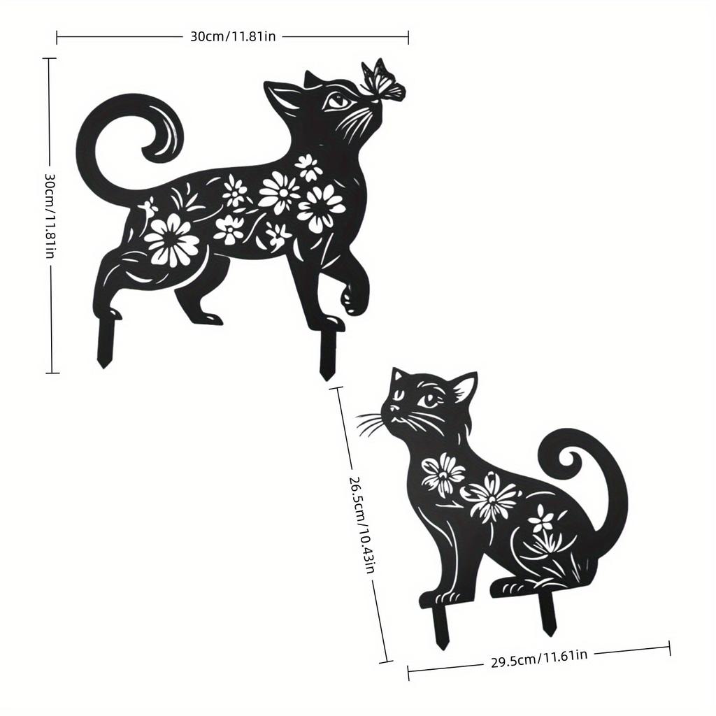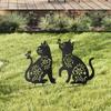 2PCS Outdoor Garden Lawn Decoration Crafts Ornament European and American Iron Art Black Cat Silhouette Floor Insert Ornament Home Furnishing