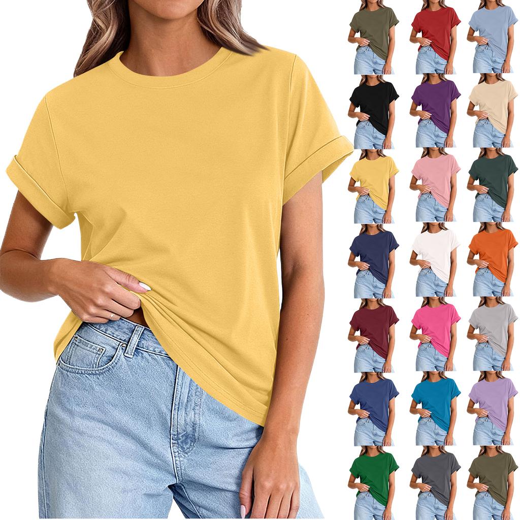 Womens Casual Rolled Short Sleeve Basic Tees Fashion Tops