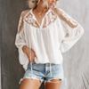 Women Fashion Lace Patchwork Long Sleeve Blouse Casual Loose Tops T-Shirt