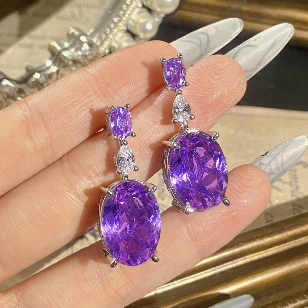 2026 Premium Full Diamond Oversized Purple Lithium Glow Chain Dress Dinner Earrings Purple Diamond Ring Color Treasure