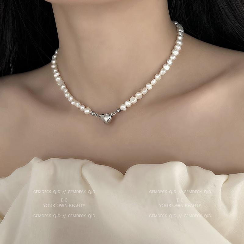 Pearl love magnet necklace women's light luxury niche simple cold wind collarbone chain design sense neck chain Internet celebrity accessories