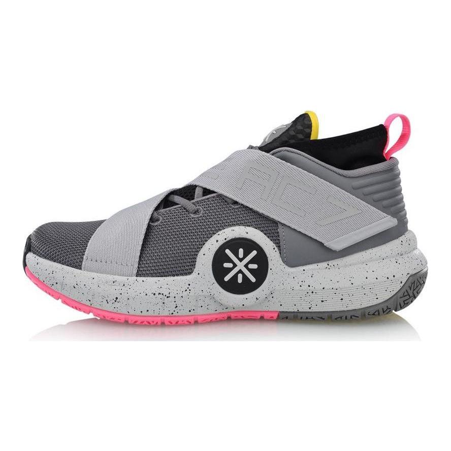 Li Ning All City 7 Cushioning Slip Resistant Abrasion Resistant Mid top Basketball Shoes Men's Gray Pink ABAN047-2