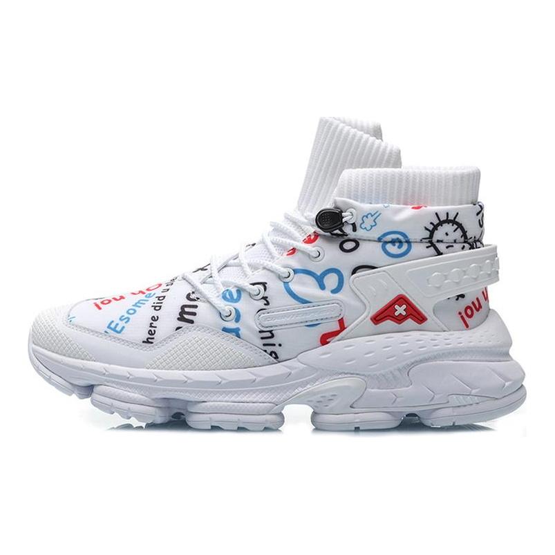 Li Ning CF Countflow AMMO Cushioning Slip Resistant Abrasion Resistant High top Casual Shoes Men's White Red Blue AGLP137-2