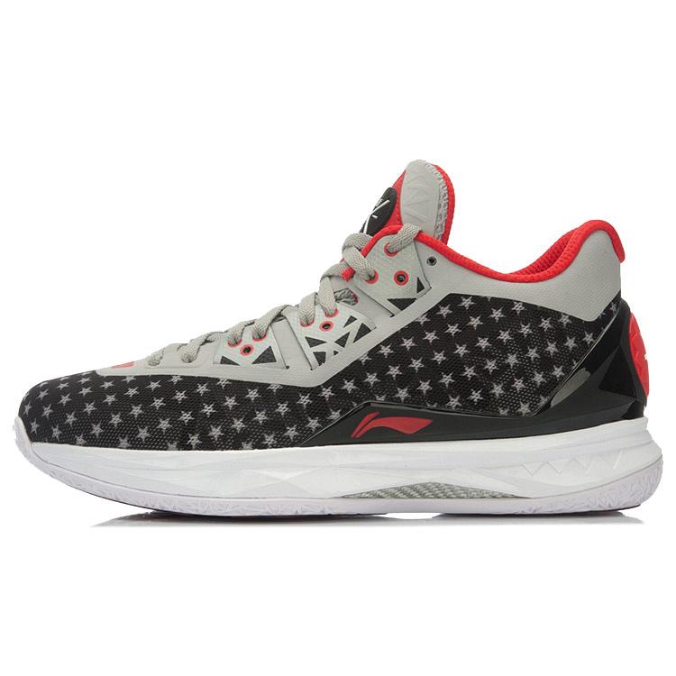 Li Ning WOW 4 Cushioning, Wear Resistant Mid top Basketball Shoes Unisex Black Gray Red ABAK033-15