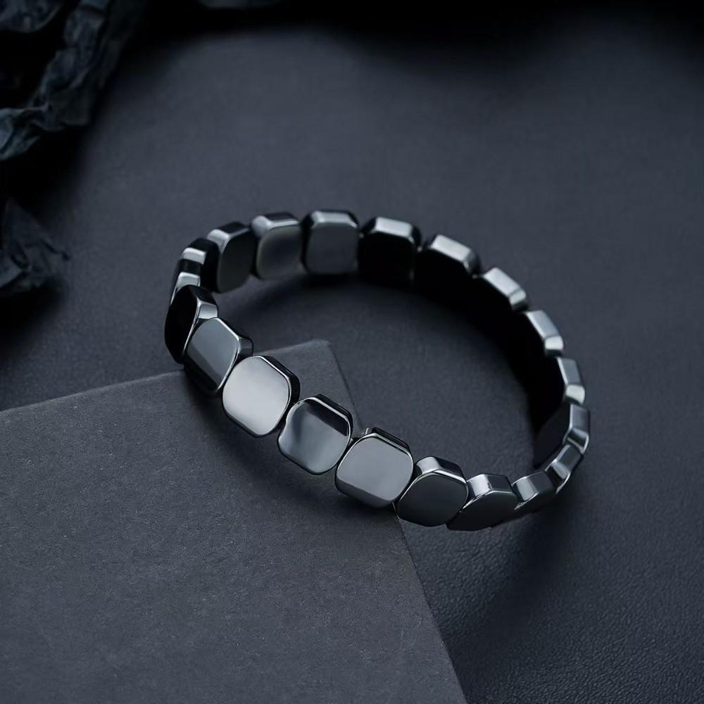 Jewelry Square Bead Wristband Elastic Men Bangle Black Gallstones Bracelet for Men and Women