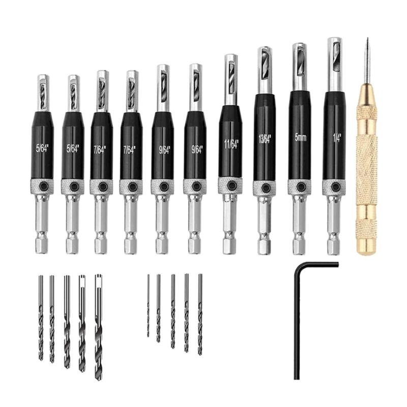 Self Centering Drill Bit set Includes Hex Key & Spare Bits Comprehensive Drill Bit Assortment for Cabinet & Door Hinges