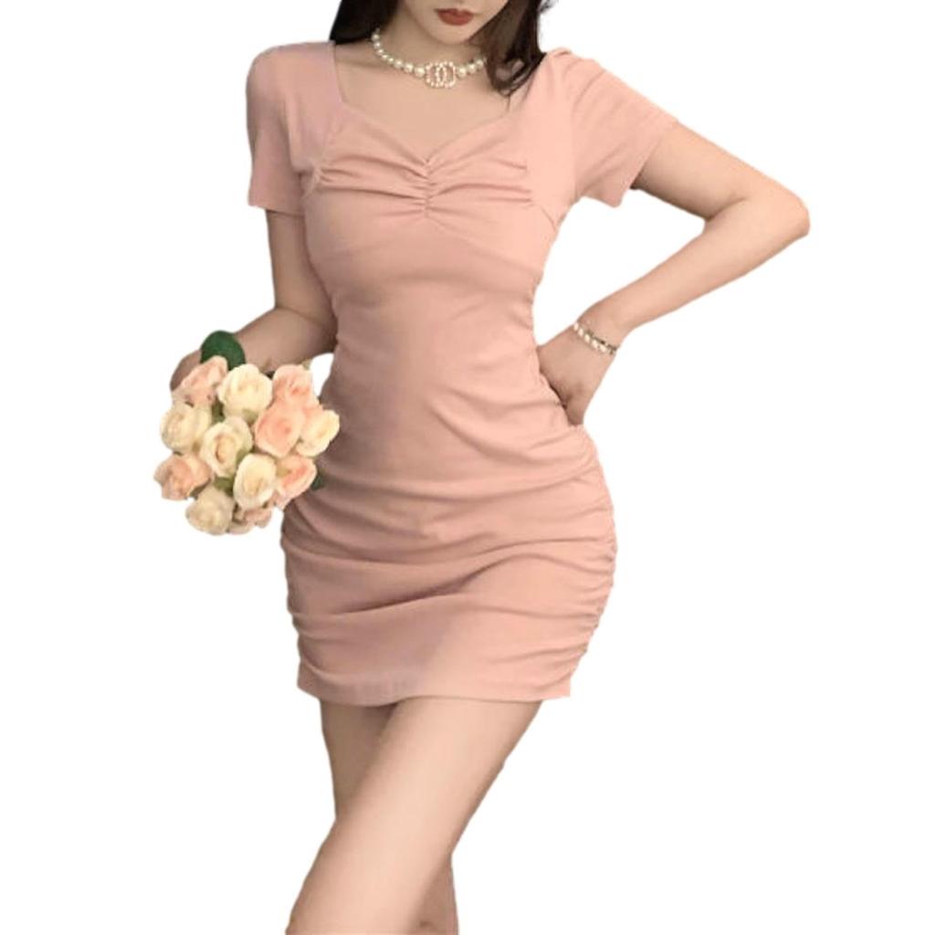 ReiLuana Mini Short Mini Beautiful Casual Salmon Dress, Body-Flattering, Décolleté-Flattering, Sleeves, Popular, Cute, Stylish, Solid, Dress, Trendy,
