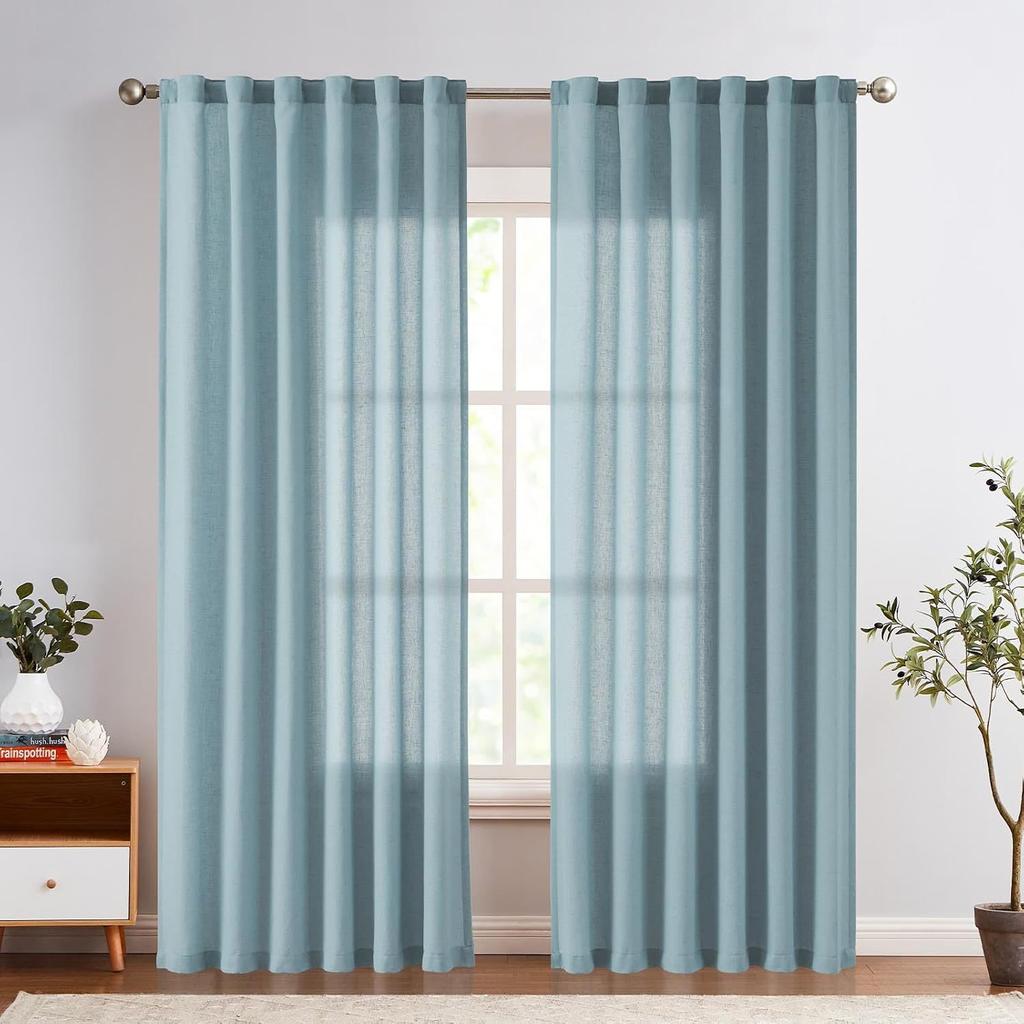 Solid-Color Translucent Curtains, Suitable for Living Rooms, Bedrooms, Dining Rooms, Balconies, Offices, Farmhouses, Machine Washable, Grommet Top