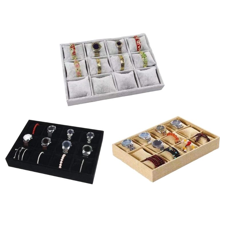 Plush Watch Display Trays Featuring 12 Grids For Organized Jewelry Presentation Luxury Flannel Jewelry Display Box