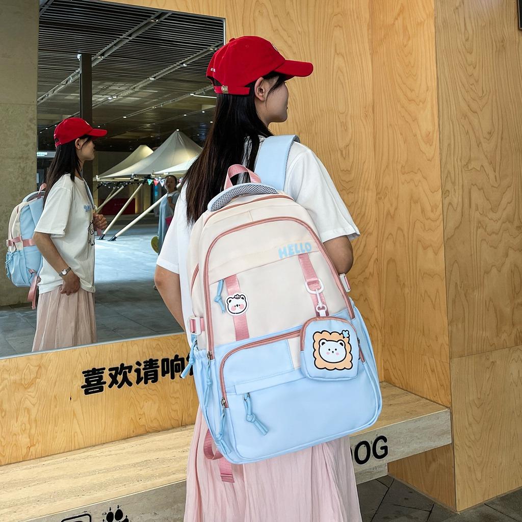 Summer new Korean version ins college style contrasting color schoolbag high value primary school students grades 3-6 multi-compartment backpack