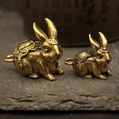 1 paio di ornamenti per statue di coniglio fortunato dello zodiaco in rame antico, statuette in miniatura per animali in ottone massiccio vintage, decorazione per scrivania per animali domestici