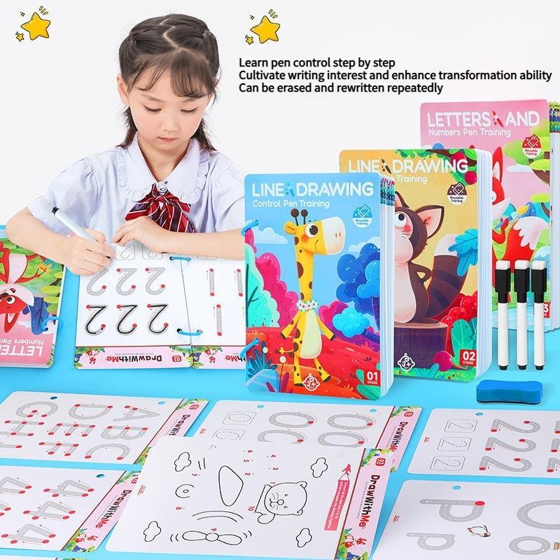 1SET erasable pen control training kindergarten baby early education enlightenment card pen movement hierarchical training concentration toy