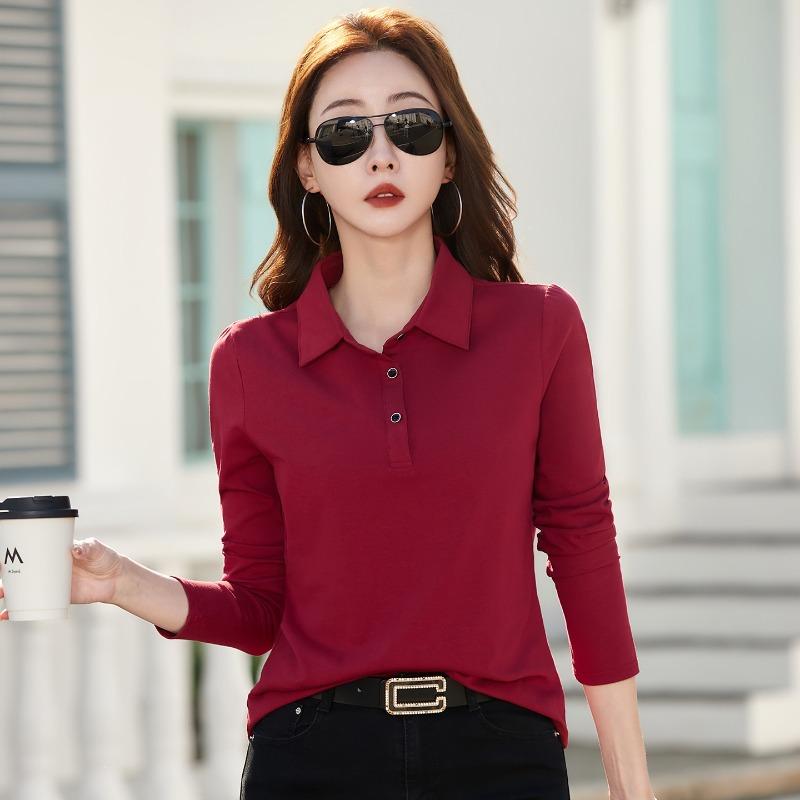 Women's Long-sleeved T-shirt Spring and Autumn New Lapel Polo Shirt Outer Wear Bottoming Shirt Was Thin Women's Clothing