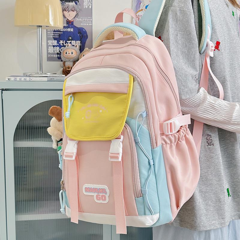 middle school student schoolbag, women's new contrasting color waterproof, ultra-light large-capacity lightweight high school backpack