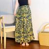 Women's Floral Print Cotton-Silk Elastic Waist Skirt - Southeast Asian Style for Spring and Summer