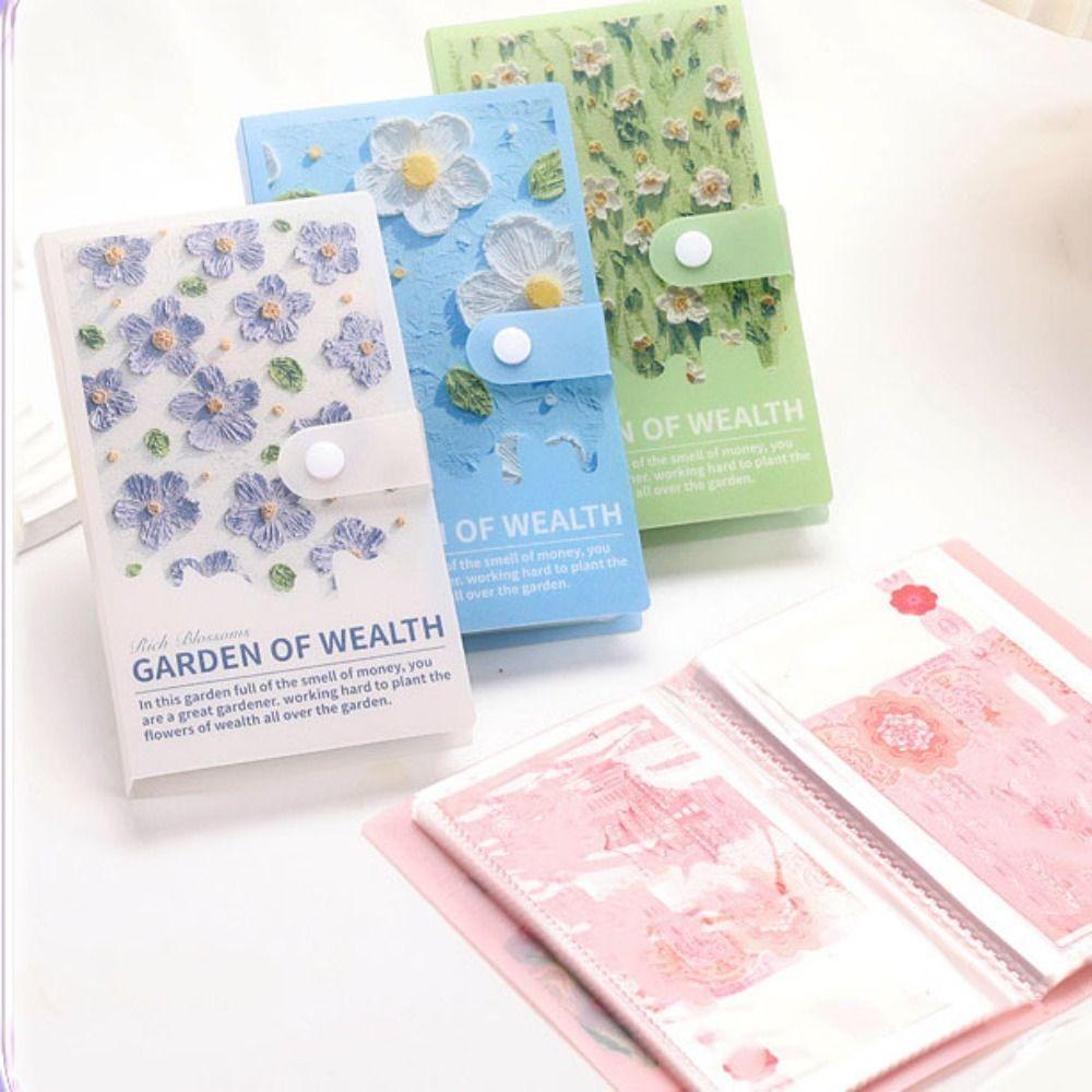 Flower Printed Button Notebook for Money Anti-splash Water PVC Savings Book 50 Sheets