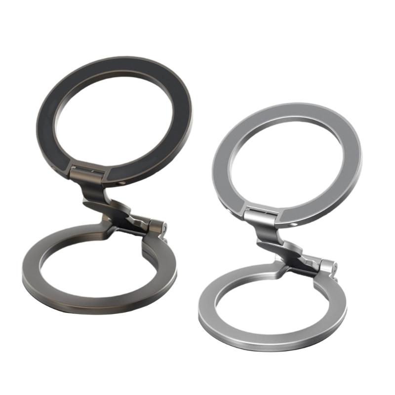 Double Hoop Magnetic Phone Holder with Full Rotation Capability Foldable Metal Construction for Desks