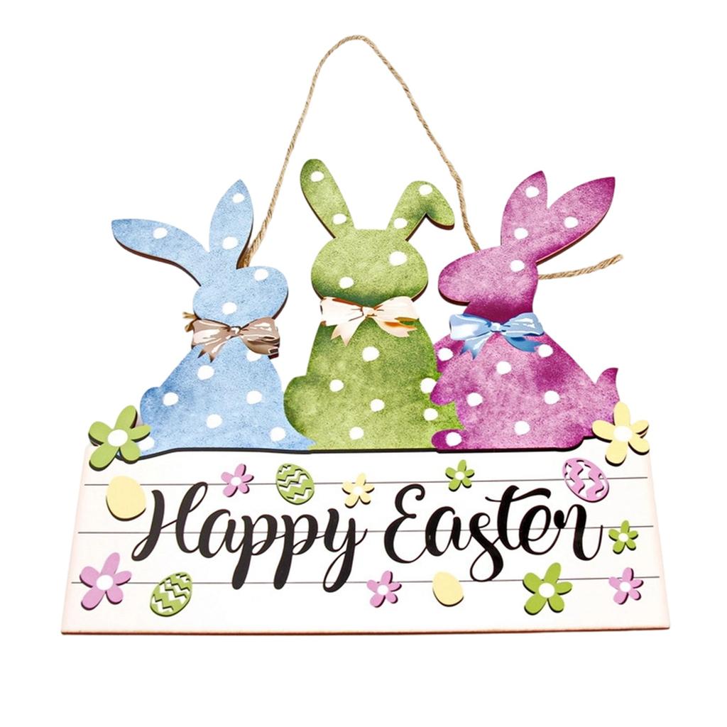 A wooden decorative plaque specially designed for Easter, with "Happy Easter" as the core slogan, incorporating holiday elements such as rabbits, Easter eggs, flowers, etc. It is a soft decoration that creates a spring revival atmosphere, combining decoration and .