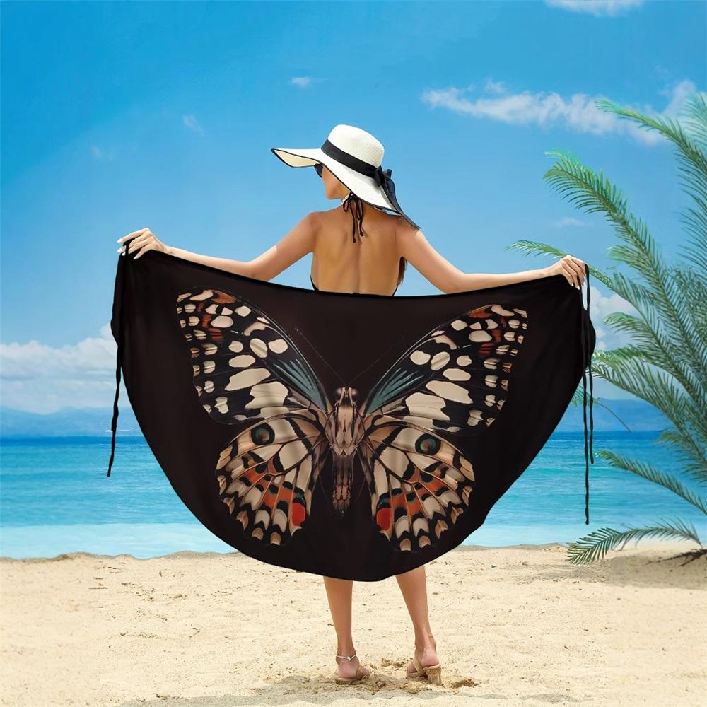 Animal butterfly print beach skirt, multiple ways to wear, cross-over irregular suspenders, seaside sun protection blouse