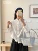 French Embroidered Stand-Up Collar Women's Shirt - Spring Style, Loose Fit, Hollow-Out Design, Long Sleeve Top