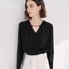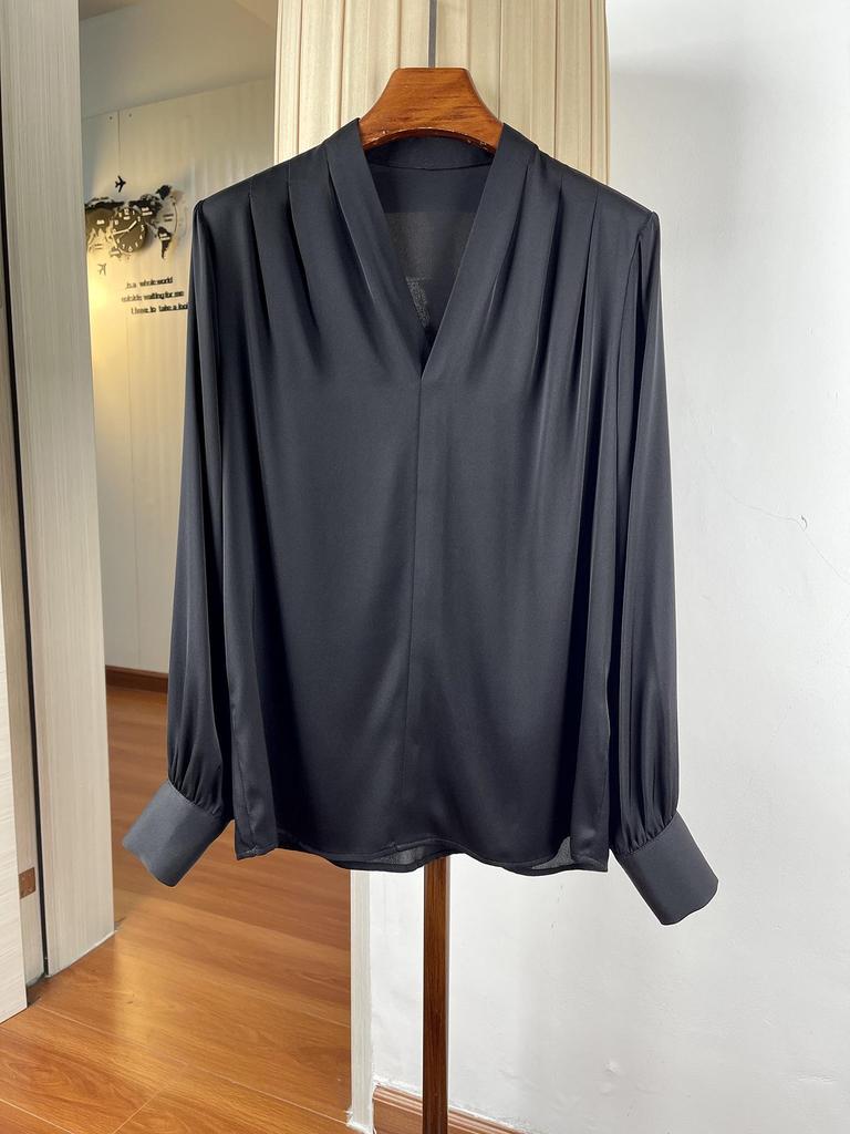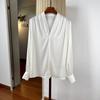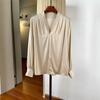 Women's Elegant V-neck Silk Pullover Shirt, Long Sleeve, Loose Fit, Slimming, Mulberry Silk, Perfect for Spring/Summer Commuting.