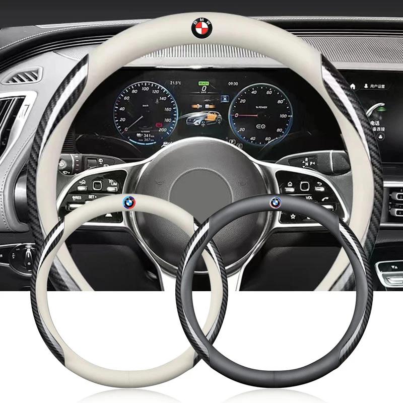 PU Leather Carbon Fiber Car Steering Wheel Cover Emblem Car Accessories For BMW 50th Kith M X1 X2 X3 X4 X5 X6 X7 E46 E90 E60 F10
