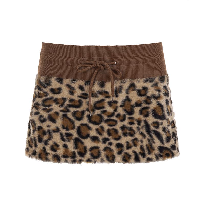 Y2K Leopard Patchwork Lace-Up Mini Skirt with Waistband