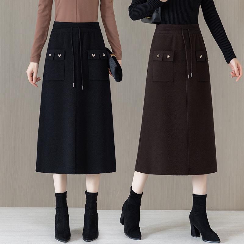 Spring 2026 High-Waisted Woolen Half-Skirt for Women - Versatile, Slimming, Casual Mid-Length.