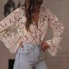 This elegant shirt combines a timeless charm with a contemporary flair, featuring a classic V-neckline and long sleeves for a sophisticated look. Crafted from high-quality polyester material, it ensures both comfort and durability. The highlight of the design is the exquisite lace decoration that adorns the collar, adding a touch of vintage elegance. Perfect for both casual outings and more formal occasions, this shirt effortlessly elevates any ensemble.