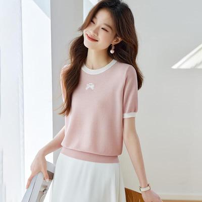 T-shirt lavorata a maglia da donna Camicia estiva lavorata a maglia T-shirt a maniche corte Pullover con o-collo Top in maglia