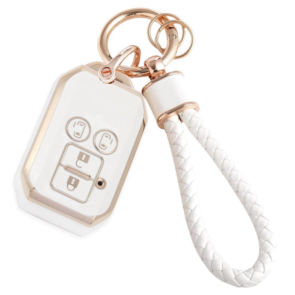 HOYZE New Spacia Key Case for Jimny, Cute Car Smart Key Case with Keychain and Shell (Gold White)