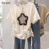 Top T-shirt Casual Corto da Donna Off-Shoulder Stile Europeo e Americano