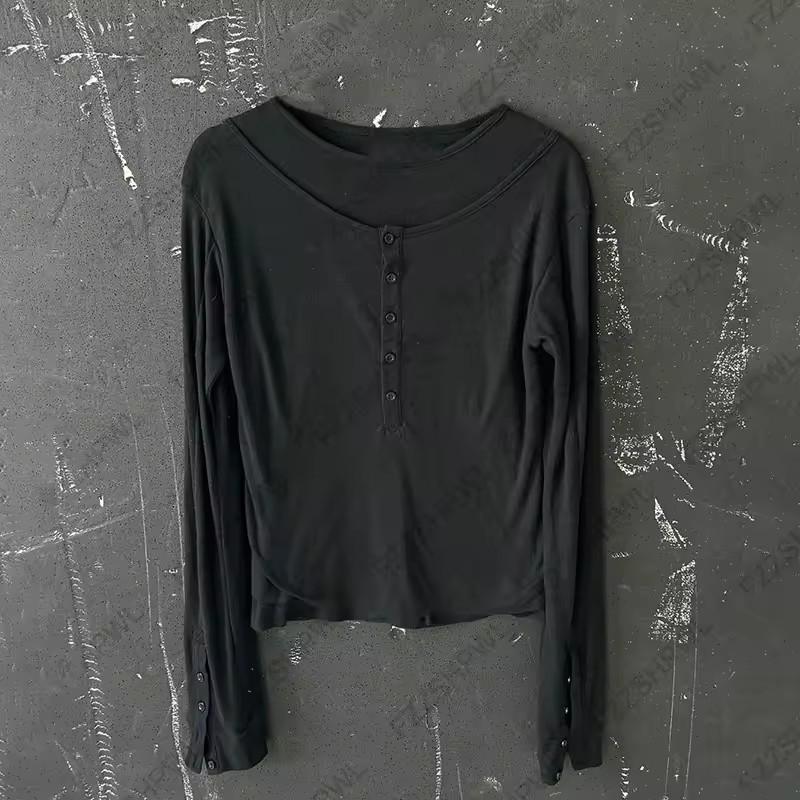 Unisex European & American Style Double-Layer Long-Sleeve Button-Up T-Shirt