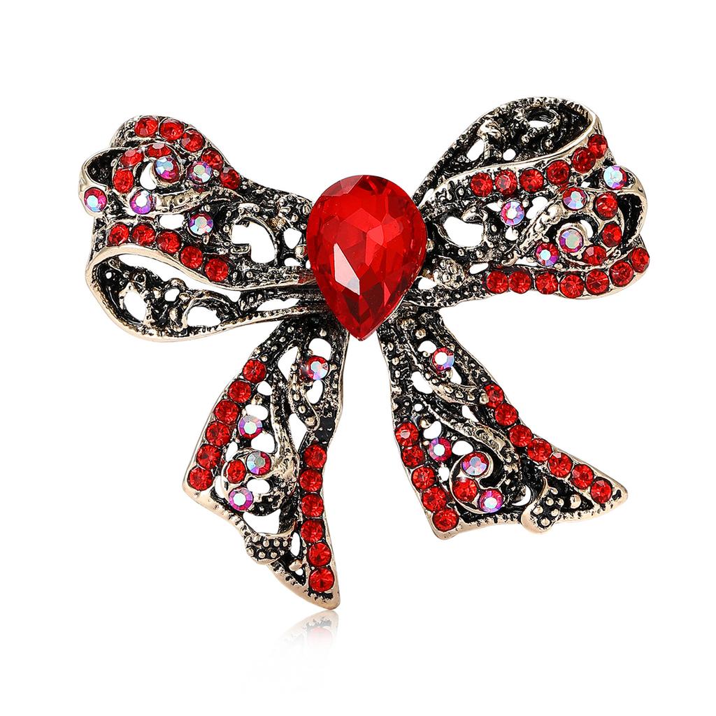 Vintage Rhinestone Bow Brooch for Women Unisex Office Party Friend Gifts Jewelry Accessories