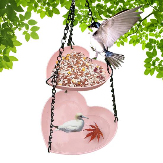 Hanging Bird Feeder for Outdoors Two-Tier Wild Bird Feeder Heart Shaped Seeds And Water Feeder Tray for Outside Garden Patio Deck Yard