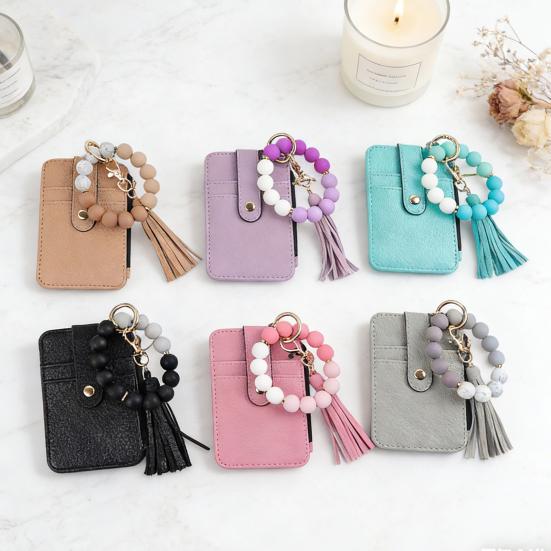 Portachiavi Braccialetto con Perline Portafoglio Donna Polsiera in Silicone Porta Carte di Credito Portafoglio Sottile con Nappa Tasca con Zip per Viaggio Shopping
