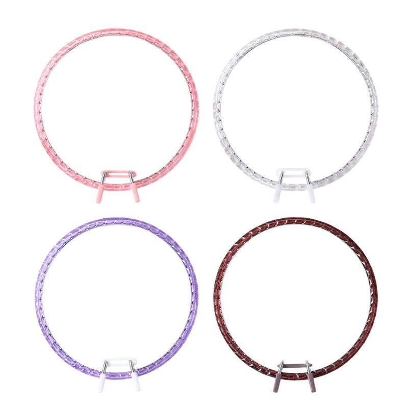 2Pcs Adjustable Embroidery Hoop Spring Loaded Round Plastic Stitching Frames for Sewing Needlework Fabric Craft Project