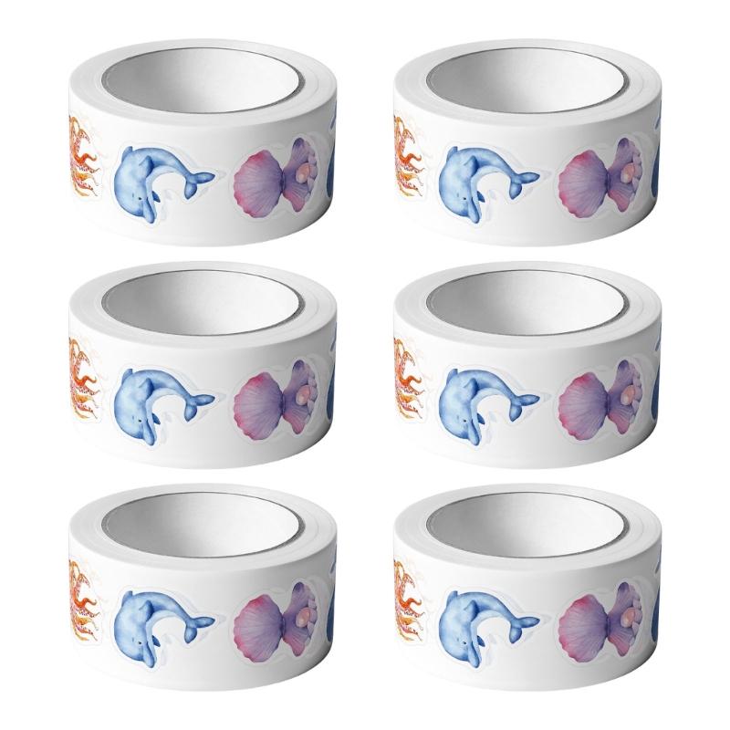 3000Pieces (500Pcs Per Roll) sea animal sticker features cartoon sea creature designs printed on water resistant coated paper for long time vibrancy and durability, solving the problem of generic decorative label.