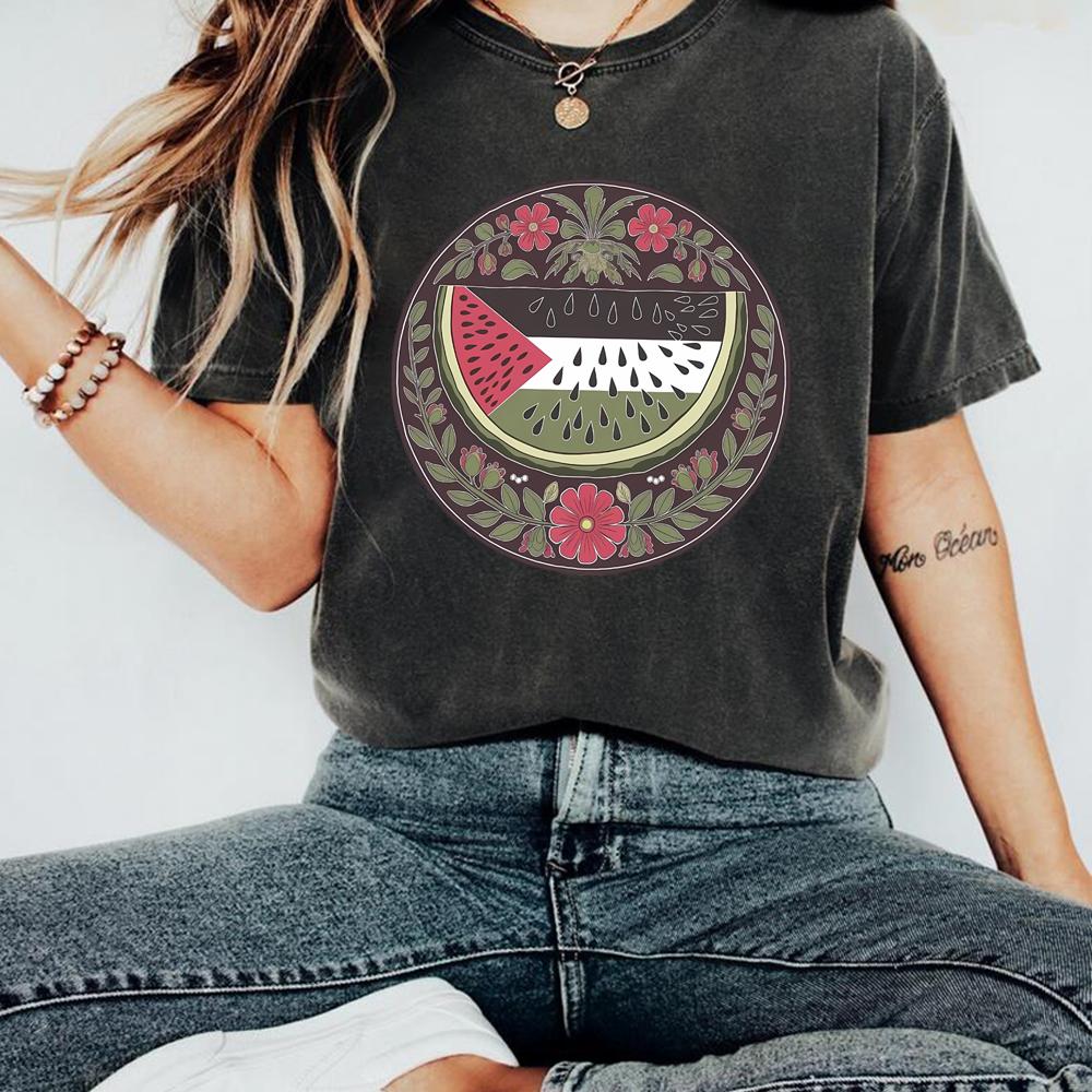 Watermelon Symbol Freedom T Shirt Human Rights T-shirt Peace and Love Tshirt Watermelon Flag Tees Unisex Short Sleeves Tops