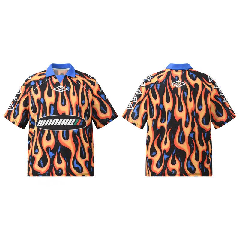 American Retro Short-Sleeved T-Shirt Mesh Quick-Drying Football Sports Top Loose Lapel Jersey For Men And Women