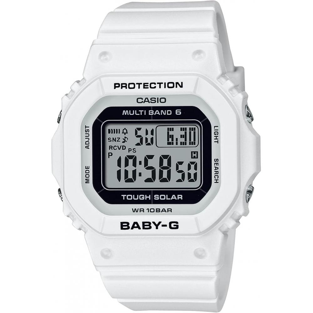 The CASIO Baby-G BGD-5650-7JF watch features a slim and compact design, updated to be more stylish compared to previous models. It is designed in basic colors that easily match various styles. This watch receives radio signals from six countries for accurate timekeeping and is equipped with a tough solar system that charges via sunlight. Additionally, it offers a water resistance of 10 ATM, making it practical for both everyday and sports activities. This watch combines both functionality and design, making it suitable for outdoor and various scenarios.
