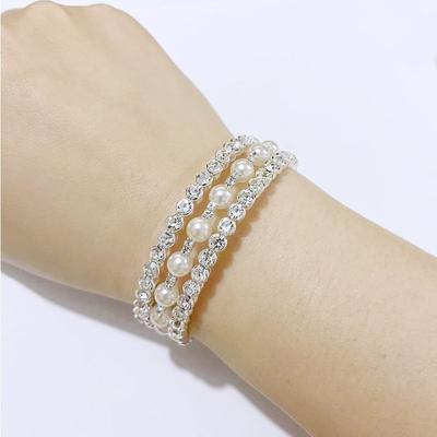 Elegant Crystal Imitation Pearl Bracelet Fashion Stretchable Pearl Cuff Wedding
