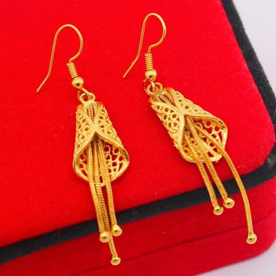 Orecchini a Goccia con Nappa di Sabbia Vietnamita Placcati Oro 24K per Donna