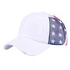Distressed Wash Cotton Baseball Hat with Star Print Curved Brims Mesh Ponytail Sun Hat for Patriotic Women Teens Girl
