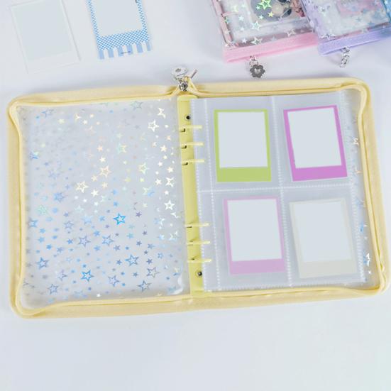Questo raccoglitore con cerniera presenta una copertina in PVC trasparente con un motivo a stelle scintillanti integrato, che ti permette di visualizzare e mostrare facilmente il contenuto all'interno. Disponibile in più colori tra cui blu, nero, giallo, rosa, bianco e viola, si adatta a vari stili personali.. La superficie del raccoglitore è decorata con adesivi di stelle colorate per un tocco giocoso e personalizzabile..